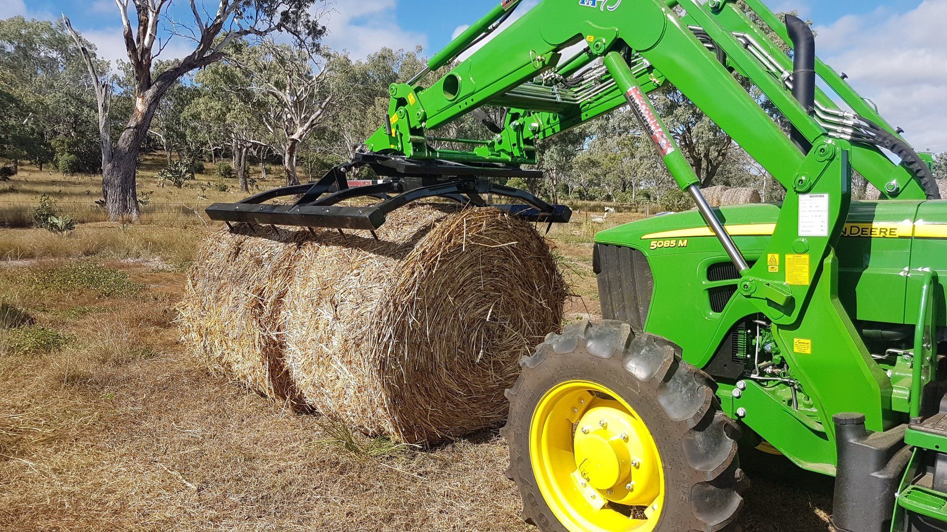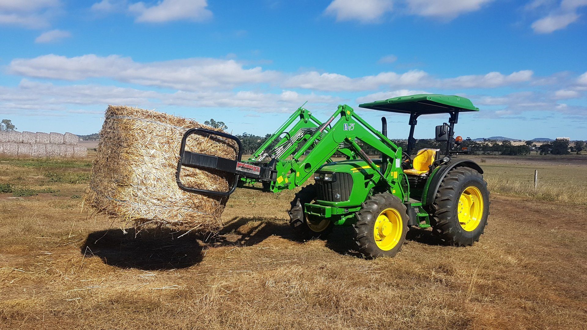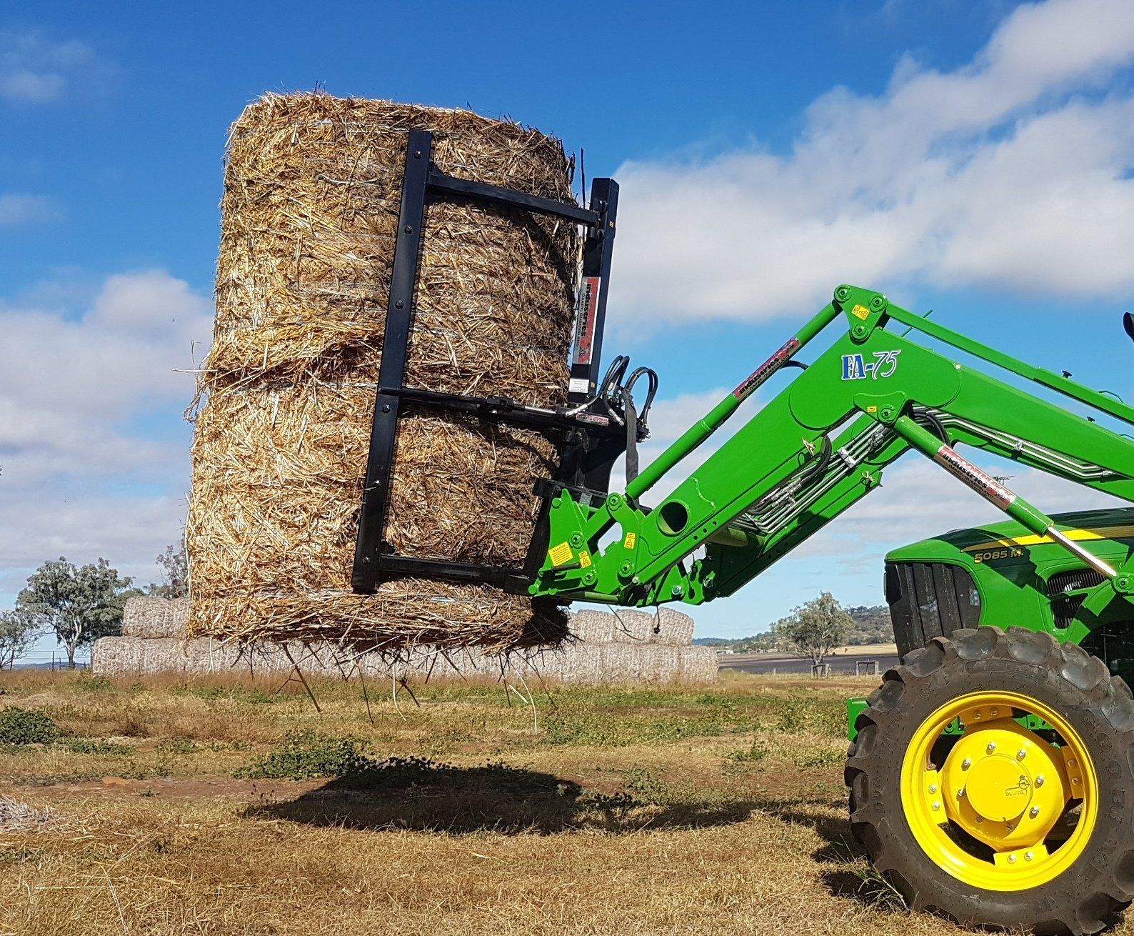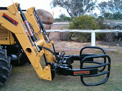 For handling and stacking two bales at a time this attachment is ideal. Its design allows for two bales to be picked up horizontally then rotated 90 degrees and to be stacked vertically on their end. Similarly to all other attachments, these can be mounted onto any tractor loader, telehandler, skid steer or wheel loader model. The extra height allows for high stacking into sheds and speed is greatly increased by handling two bales.