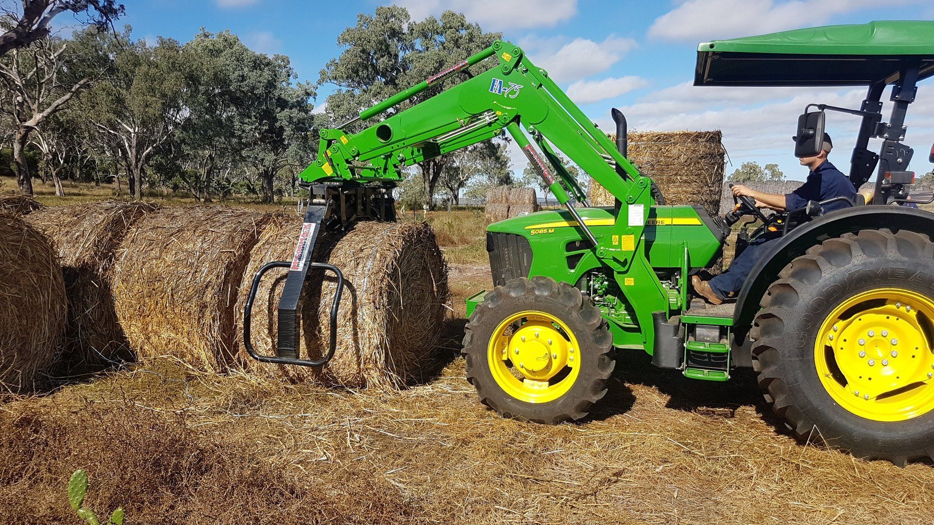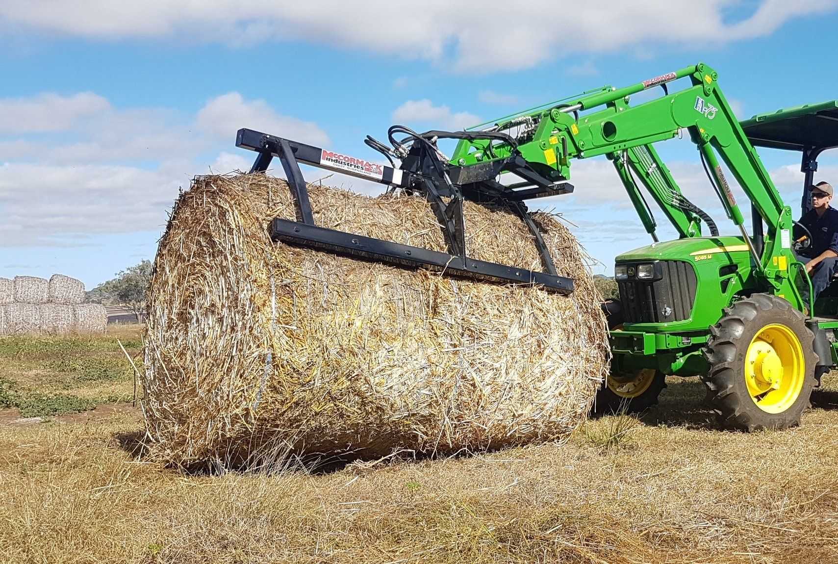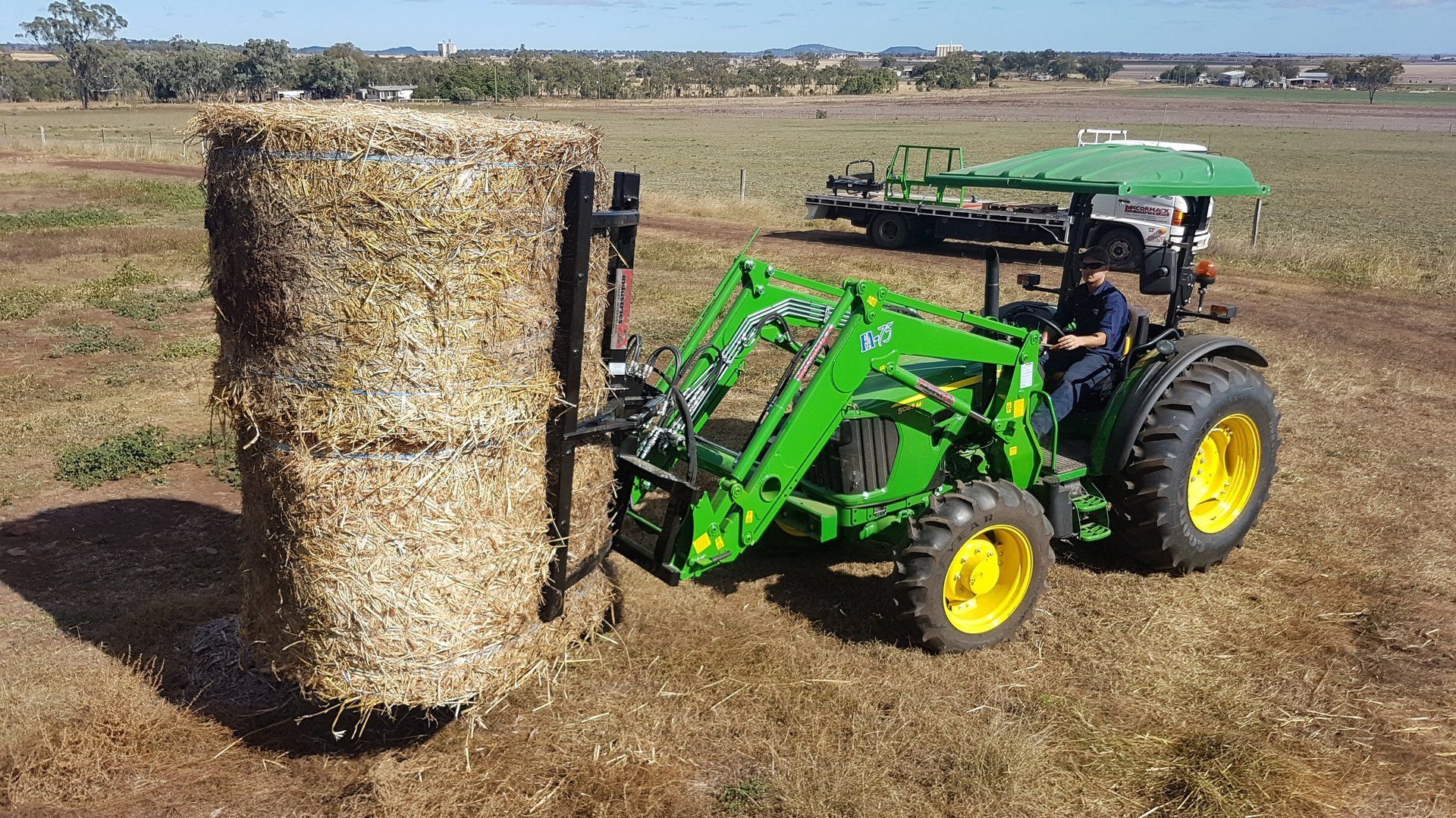 For handling and stacking two bales at a time this attachment is ideal. Its design allows for two bales to be picked up horizontally then rotated 90 degrees and to be stacked vertically on their end. Similarly to all other attachments, these can be mounted onto any tractor loader, telehandler, skid steer or wheel loader model. The extra height allows for high stacking into sheds and speed is greatly increased by handling two bales.
