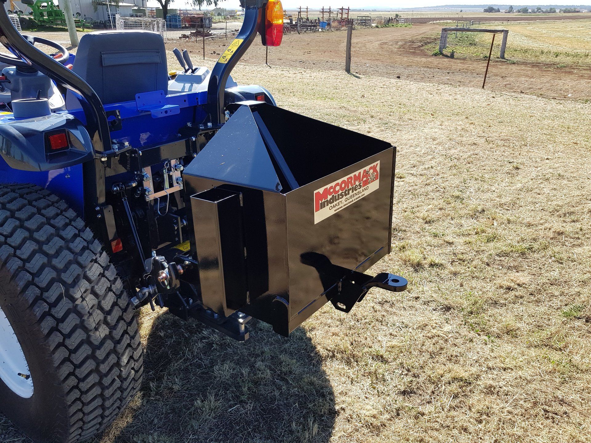 McCormack Industries manufactures a variety of different size boxes for many applications. These range from 250kg, 500kg up to 750kg in all 3 Point Linkage Categories. These boxes come ready to be filled with concrete and attached to the tractor.